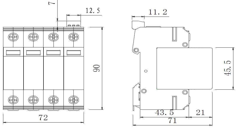 • DXH06-FCS/3+M          20-40kA 760V 4P L-PE      中普光伏防雷器