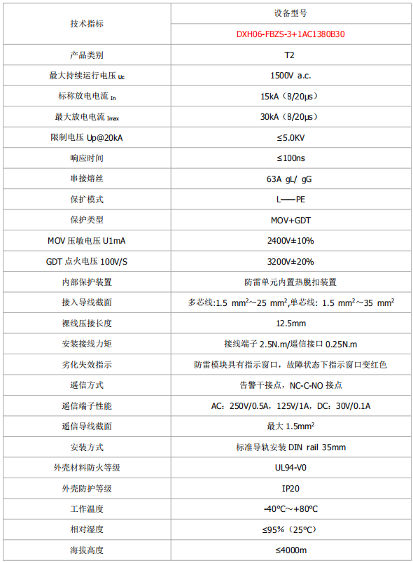 DXH06-FBZS-3+1AC1380B30是帶有遙信報(bào)警裝置的電涌保護(hù)器。產(chǎn)品主要用于通信、鐵路、計(jì)算機(jī)網(wǎng)絡(luò)、電力、氣象、交通等領(lǐng)域的電子、電源設(shè)備的防雷以及操作過(guò)電壓的保護(hù)。