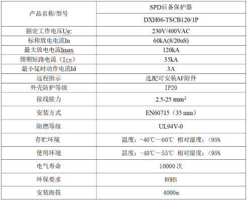 3 本產品僅限使用于SPD回路過電流保護,請勿使用于其它場合。
