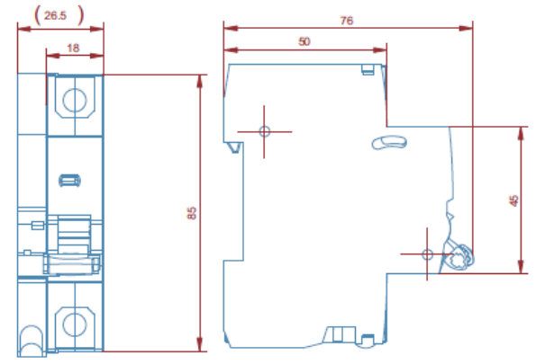 產(chǎn)品采用 35mm 標(biāo)準(zhǔn)導(dǎo)軌安裝,單模尺寸為:76×85×36(mm),未標(biāo)注公差:±0.5mm。如下列圖所示(單位:mm):